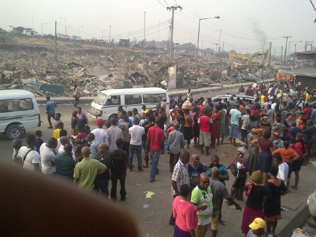 Lagos State government has taken a bold step towards the rehabilitation of popular Oshodi market....starting with mass demolition of the structures....mostly shops belonging to small scale traders......more pics below after the cut: